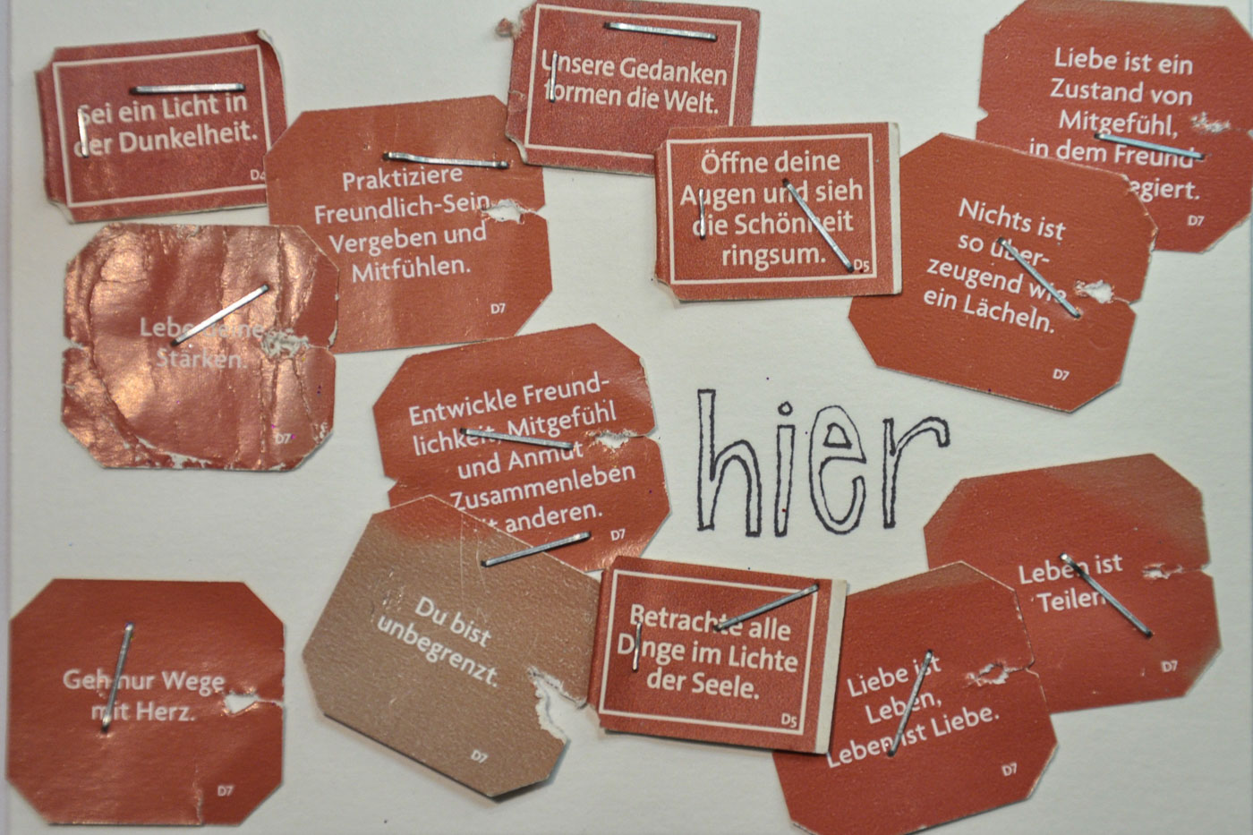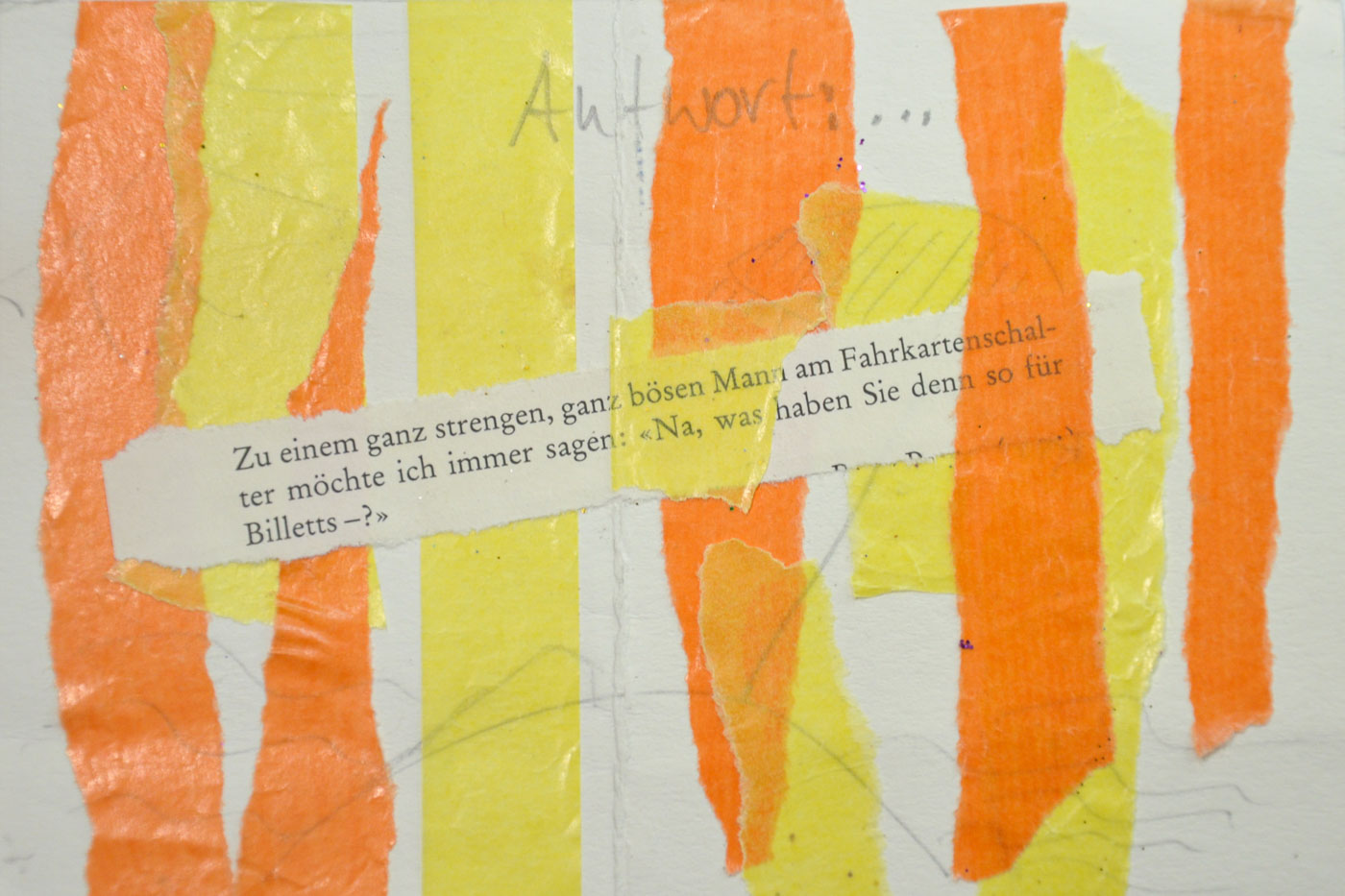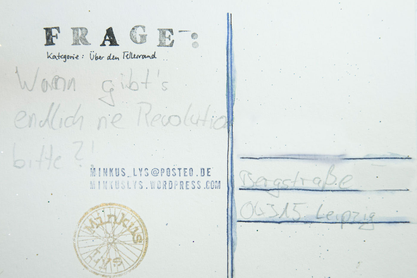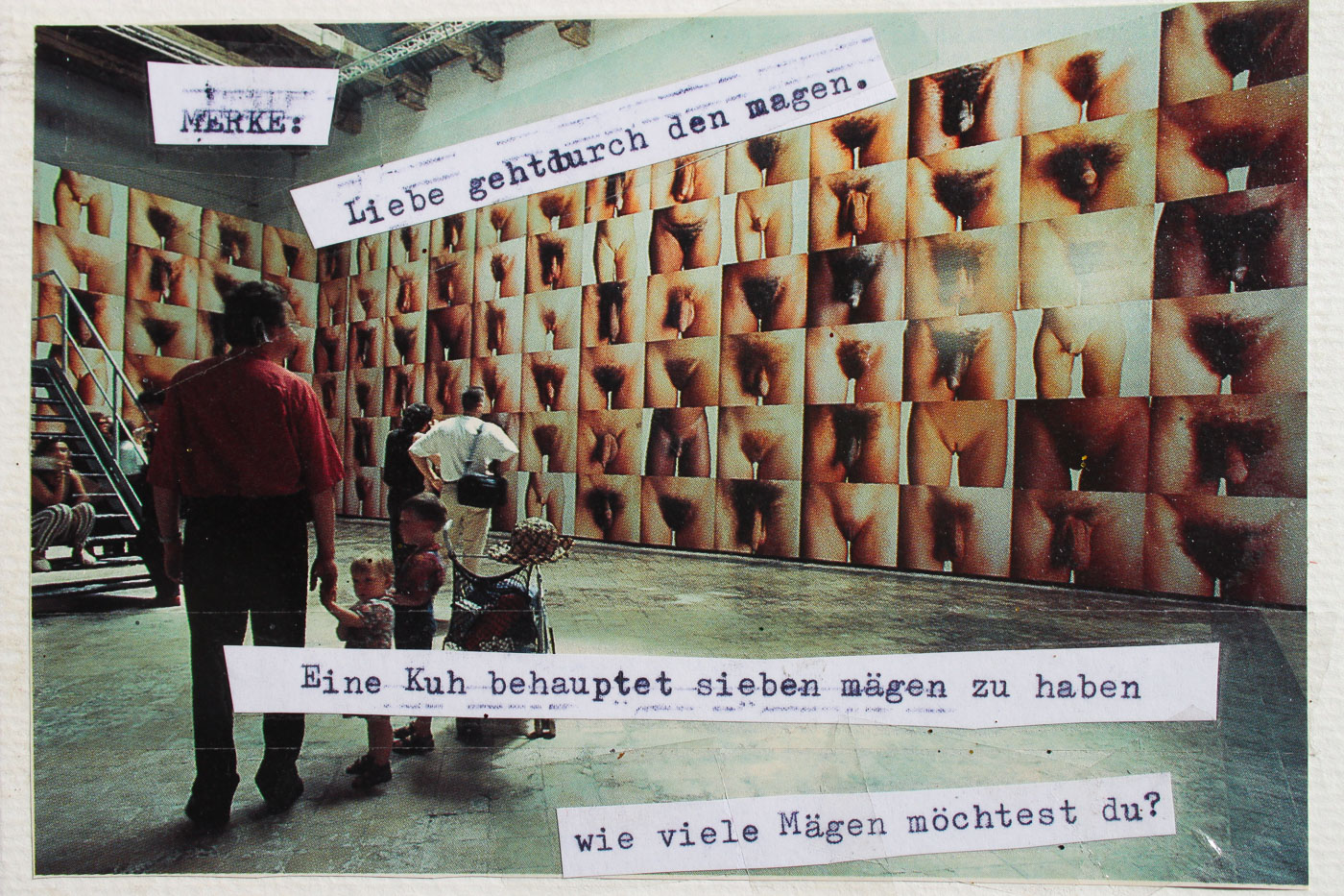 Auf verschiedenen Wegen kann die Orakelmaschine um Antworten auf persönliche Fragen gebeten werden: eine mit einer Frage beschriftete Postkarte wird in das entsprechende Fach geworfen und nach etwas Zeit kommt eine collagierte und individuell angefertigte Antwort aus der Maschine heraus.